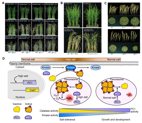 2023/06/25生物學(xué)院劉選明/林建中團(tuán)隊(duì)發(fā)現(xiàn)磷酸酶PC1是平衡水稻耐鹽和生長(zhǎng)發(fā)育的分子開關(guān)近日,生物學(xué)院劉選明/林建中團(tuán)隊(duì)從水稻中發(fā)現(xiàn)了一個(gè)調(diào)控耐鹽性的蛋白質(zhì)磷酸酶PC1(Phosphatase ofCatalase1),提出了PC1作為CAT響應(yīng)鹽脅迫的分子開關(guān)參與平衡水稻耐鹽和正常生長(zhǎng)發(fā)育的新機(jī)制。該研究成果為解析... -